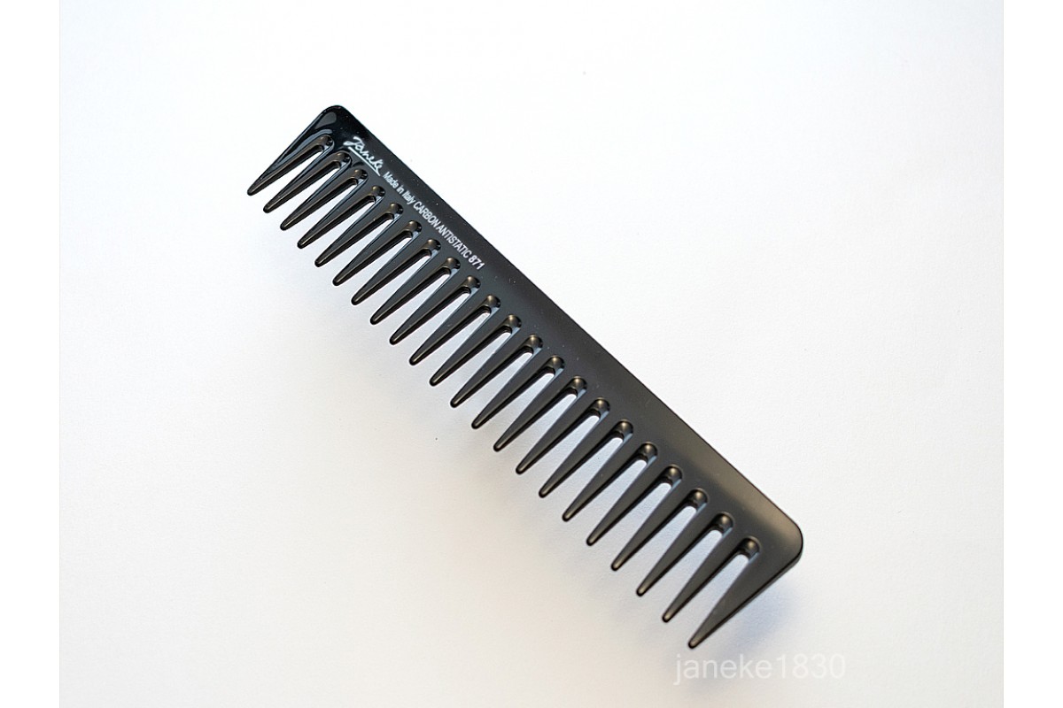 Одна из популярных расчесок Janeke -это Supercomb уникальный гребень с запатентованной технологией, которая подойдет для ухода за волосами всех типов и детскими волосами. У нее особая форма зубчиков, которая позволяет за несколько минут прочесать волосы, организовать локоны в укладке или распределить укладочные средства. Зубчики расчески не травмируют кожу головы и позволяют расчесывать влажные волосы и без проблем кучерявые волосы.