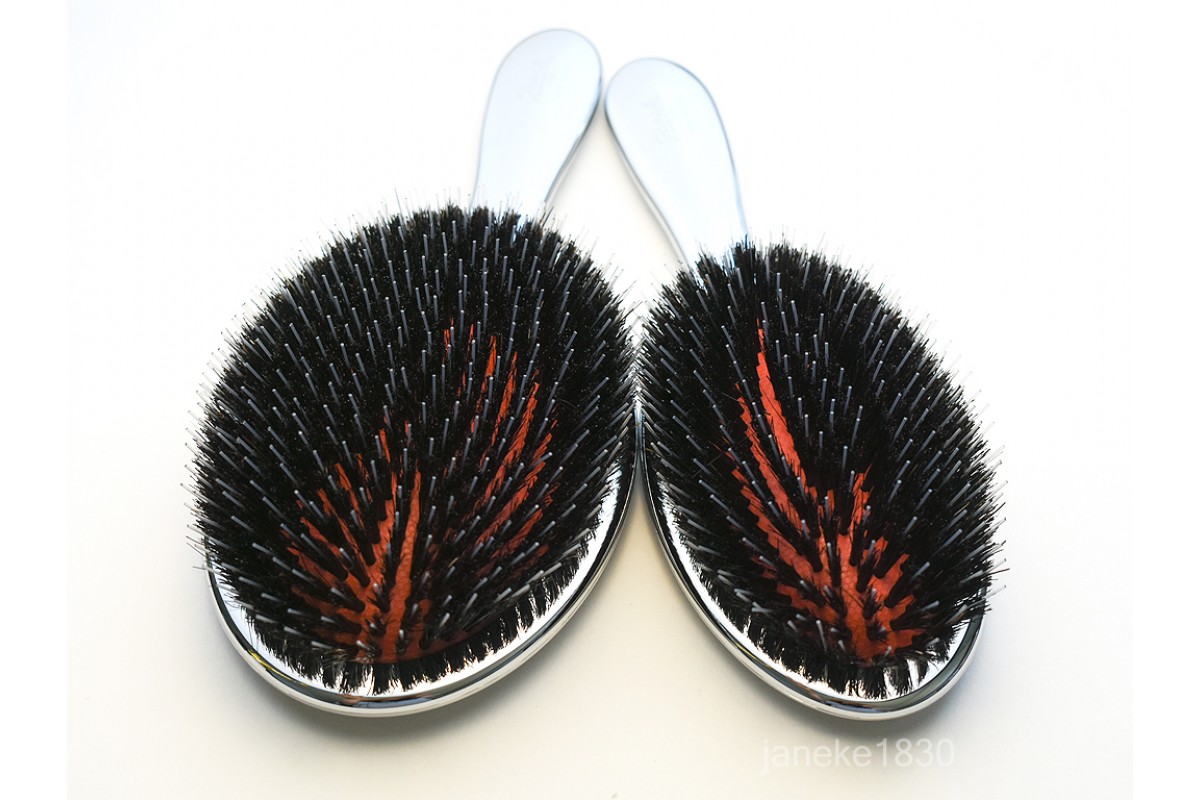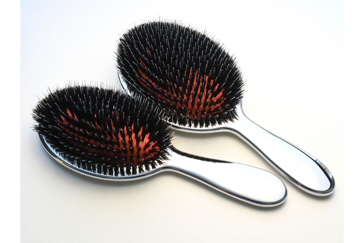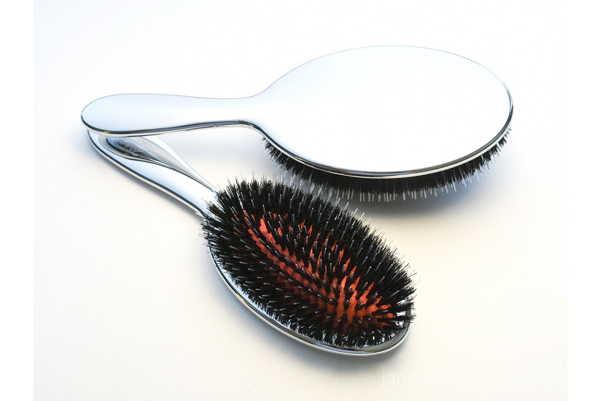Щетка для волос серебряная с чёрной натуральной щетиной и леской Janeke Superbrush Limited Edition Silver CRSP22M  Получ..