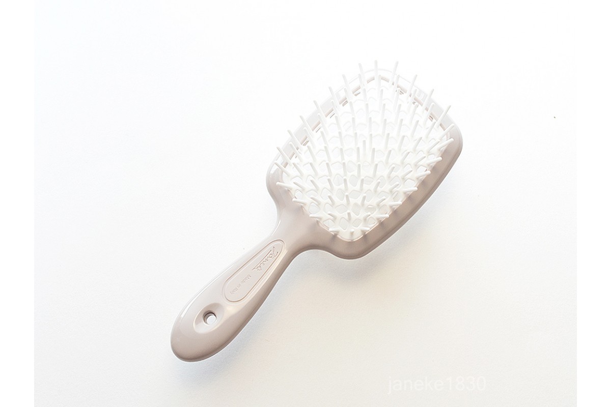 Самая популярная модель расчесок Janeke -это Superbrush уникальная массажная щетка с запатентованной технологией,которая подойдет для ухода за волосами всех типов и детскими волосами.У нее особая форма зубчиков,которая позволяет за несколько минут распутывать даже самые запутанные колтуны.Зубчики расчески не травмируют кожу головы и позволяют ррасчесывать влажные волосы и без проблем кучерявые волосы.