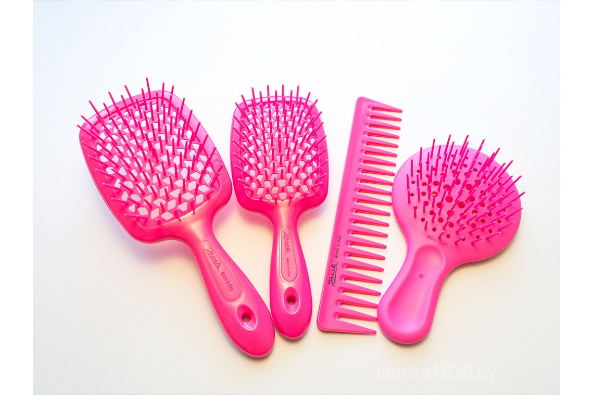 Самая популярная модель расчесок Janeke -это Superbrush уникальная массажная щетка с запатентованной технологией,которая подойдет для ухода за волосами всех типов и детскими волосами.У нее особая форма зубчиков,которая позволяет за несколько минут распутывать даже самые запутанные колтуны.Зубчики расчески не травмируют кожу головы и позволяют ррасчесывать влажные волосы и без проблем кучерявые волосы.