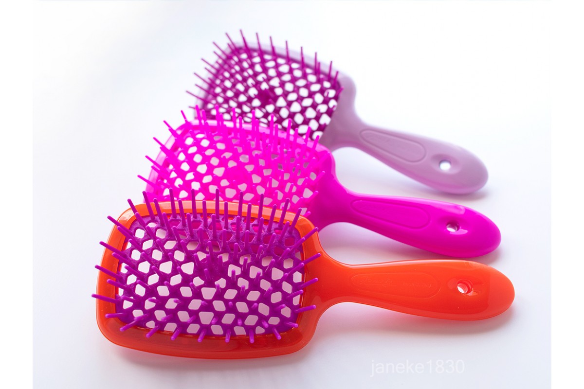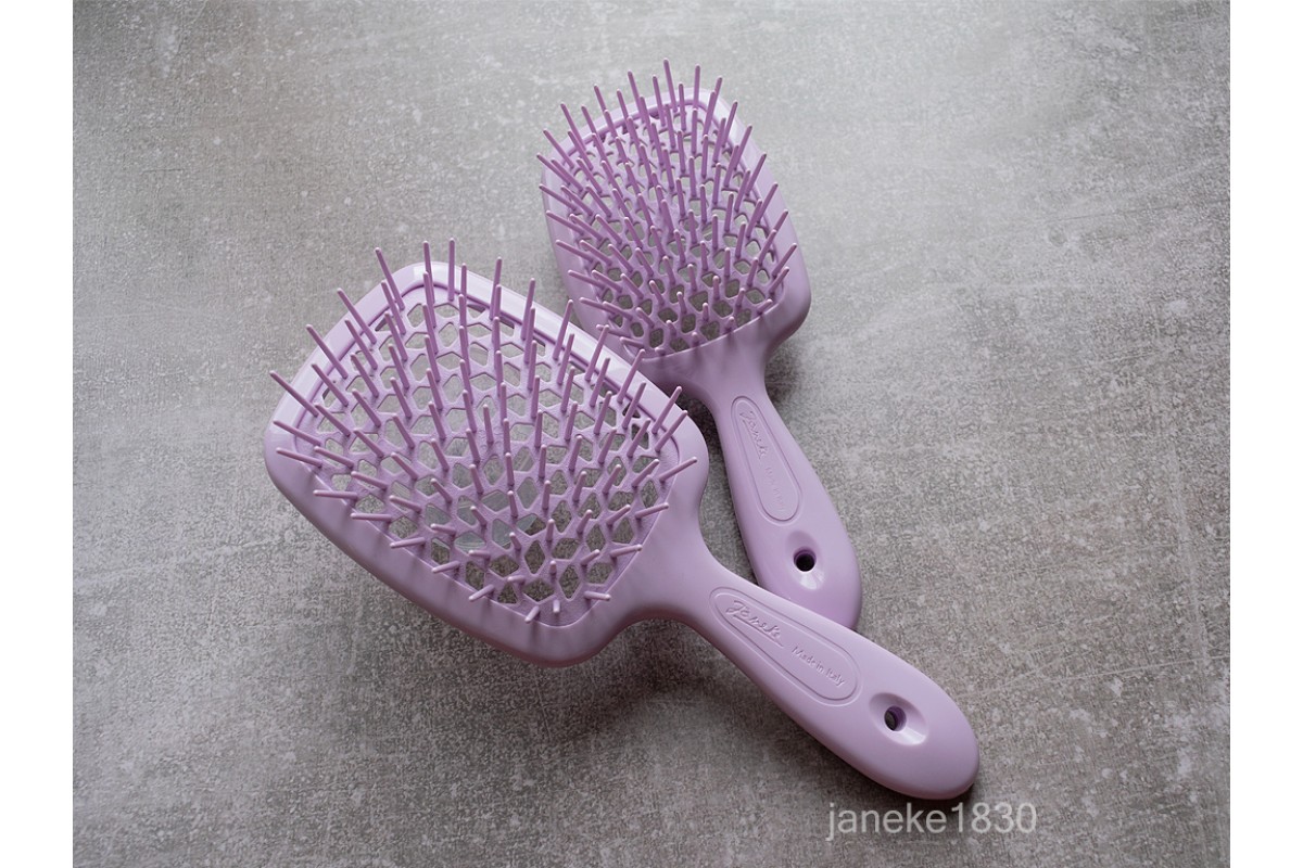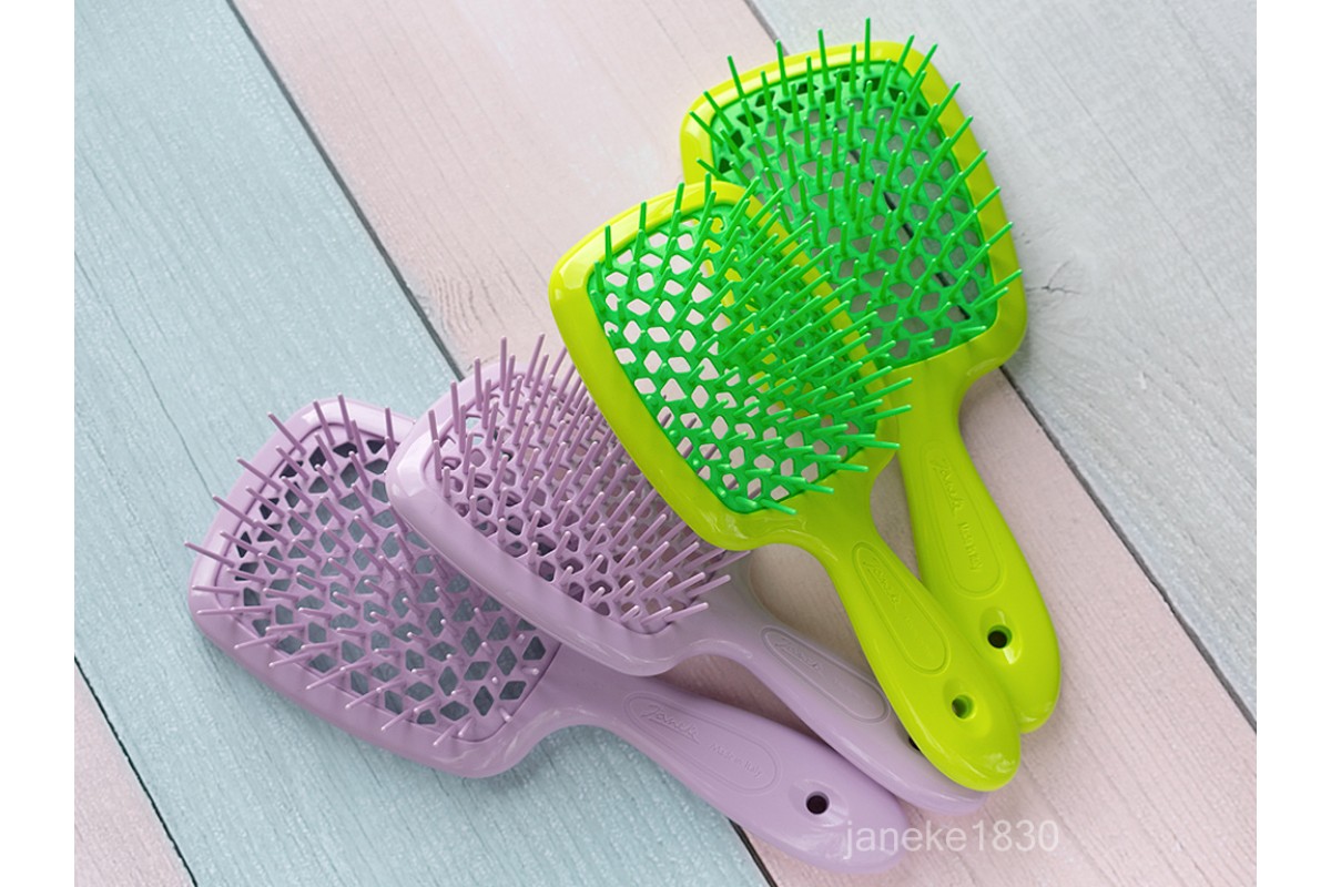 Самая популярная модель расчесок Janeke -это Superbrush уникальная массажная щетка с запатентованной технологией, которая подойдет для ухода за волосами всех типов и детскими волосами. У нее особая форма зубчиков, которая позволяет за несколько минут распутывать даже самые запутанные колтуны. Зубчики расчески не травмируют кожу головы и позволяют расчесывать влажные волосы и без проблем кучерявые волосы.