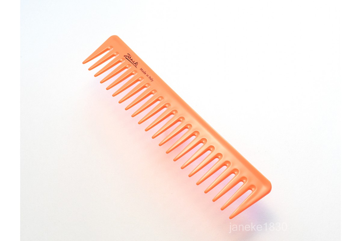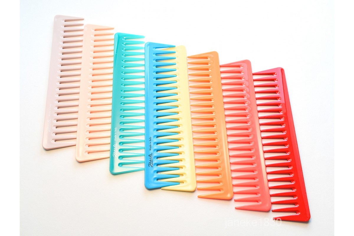 Одна из популярных расчесок Janeke -это Supercomb уникальный гребень с запатентованной технологией,которая подойдет для ухода за волосами всех типов и детскими волосами.У нее особая форма зубчиков,которая позволяет за несколько минут прочесать волосы,организовать локоны в укладке или распределить укладочные средства.Зубчики расчески не травмируют кожу головы и позволяют ррасчесывать влажные волосы и без проблем кучерявые волосы.