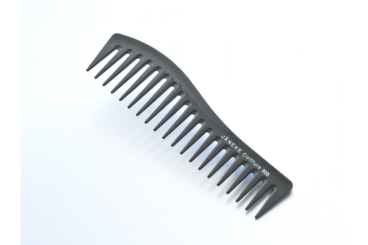 Одна из популярных расчесок Janeke -это Supercomb уникальный гребень с запатентованной технологией,которая подойдет для ухода за волосами всех типов и детскими волосами.У нее особая форма зубчиков,которая позволяет за несколько минут прочесать волосы,организовать локоны в укладке или распределить укладочные средства.Зубчики расчески не травмируют кожу головы и позволяют ррасчесывать влажные волосы и без проблем кучерявые волосы.