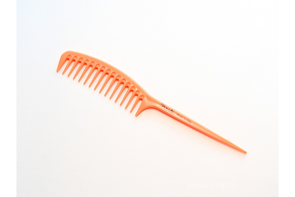 Одна из популярных расчесок Janeke  -это Supercomb уникальный гребень с запатентованной технологией,которая подойдет для ухода за волосами всех типов и детскими волосами.У нее особая форма зубчиков,которая позволяет за несколько минут прочесать волосы,организовать локоны в укладке или распределить укладочные средства.Зубчики расчески не травмируют кожу головы и позволяют ррасчесывать влажные волосы и без проблем кучерявые волосы.
